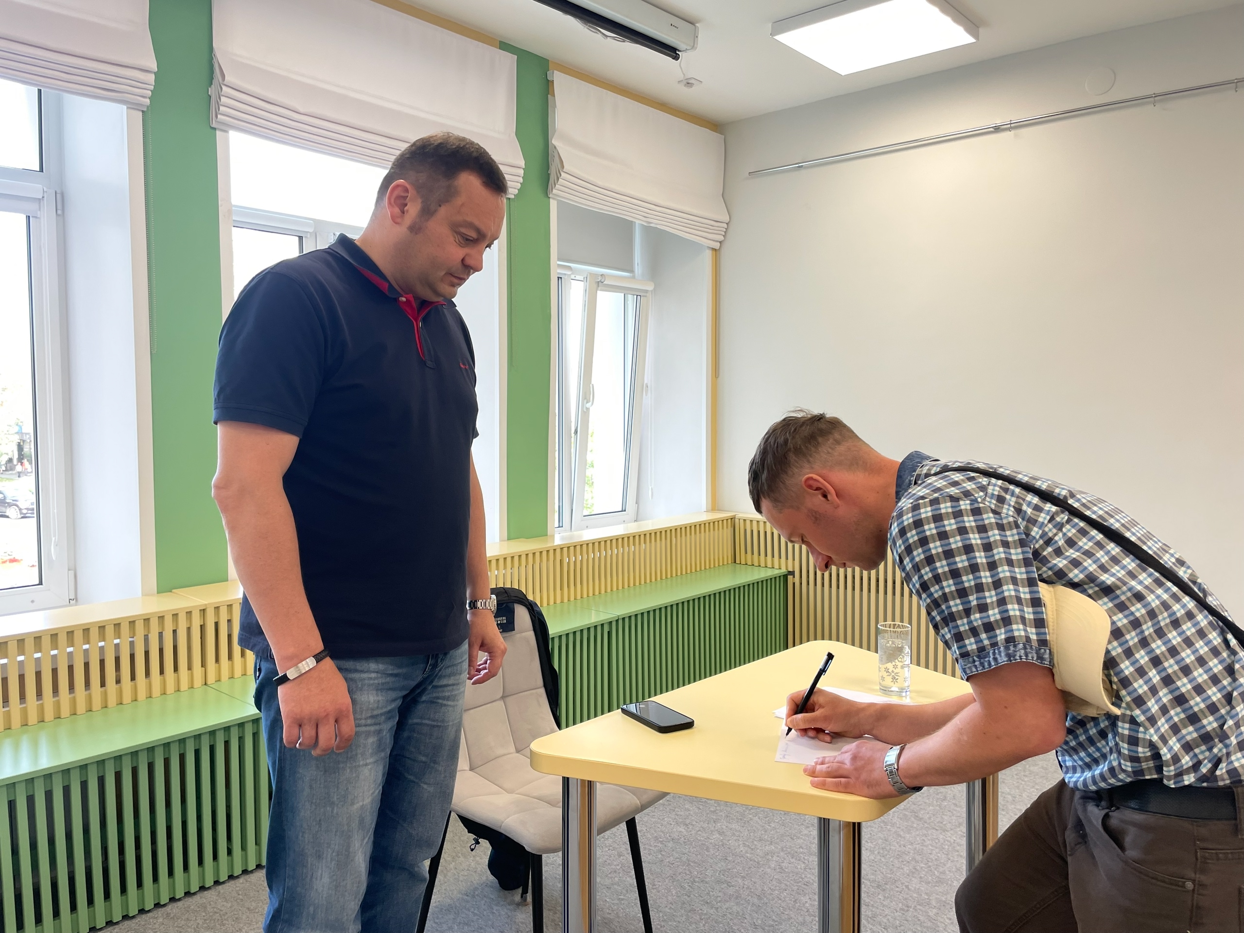 Среди читателей библиотеки присутствовали и поэты. Они обсудили возможности передачи своих произведений в фонд литературного форума и подарили Александру Орлову свои книги.